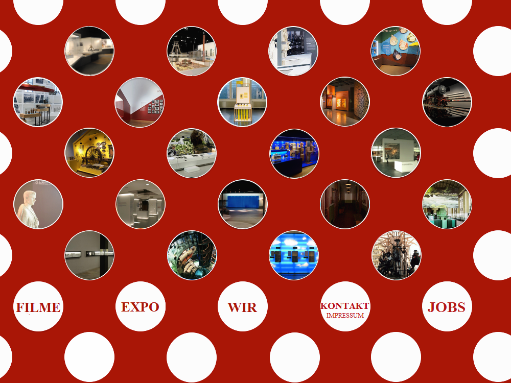 2021 - Dauerausstellung Atomphysik und Optik / Deutsches Museum München / München 2018 - Dauerausstellung Rundgang 1 / Deutsches Bergbau-Museum / Bochum 2018 - Dauerausstellung "Tuet auf die Pforten" / Centrum Judaicum / Berlin 2018 - WasserWissensWerk / Steinbachtalsperre 2017 - Wolfenbüttel 2016 - Golem / Jüdisches Museum / Berlin 2016 - energie.wende / München 2015 - Gewürzmuseum / Kulmbach 2015 - Modellarium / Nürnberg 2014 - Schwarzenberg 2013 - Paläon - Schöninger Speere 2010 - Museum für Kommunikation / Nürnberg 2010 - Topographie des Terrors / Berlin 2008 - Collections du musée du Louvre / Arles / Frankreich 2008 - Gedenkstätte Sachsenhausen / Oranienburg 2006 - Mûr lumineux / Rennes / Frankreich 2005 - Dauerausstellung Geschichte von Elsass-Lothringen / Schirmeck / Frankreich 2004 - Natur nach Maß!? / Ahlen 2003 - Landesmuseum für Archäologie / Halle 2000 - Cyclebowl / EXPO Hannover 1998 - The story of Berlin 1992 - EXPO Sevilla / Spanien Referenzen Film Referenzen Ausstellung Über uns Kontakt Zu den Stellenangeboten